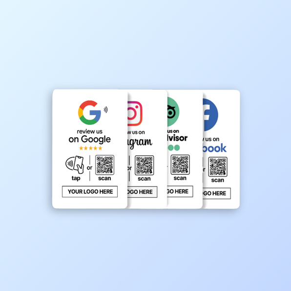 Make it easy for customers to leave a review in seconds. Simply ask them to tap their phone on the NFC card or scan the QR code, and they’ll be redirected instantly to your chosen review page (Google, Facebook, Instagram, or any custom link).